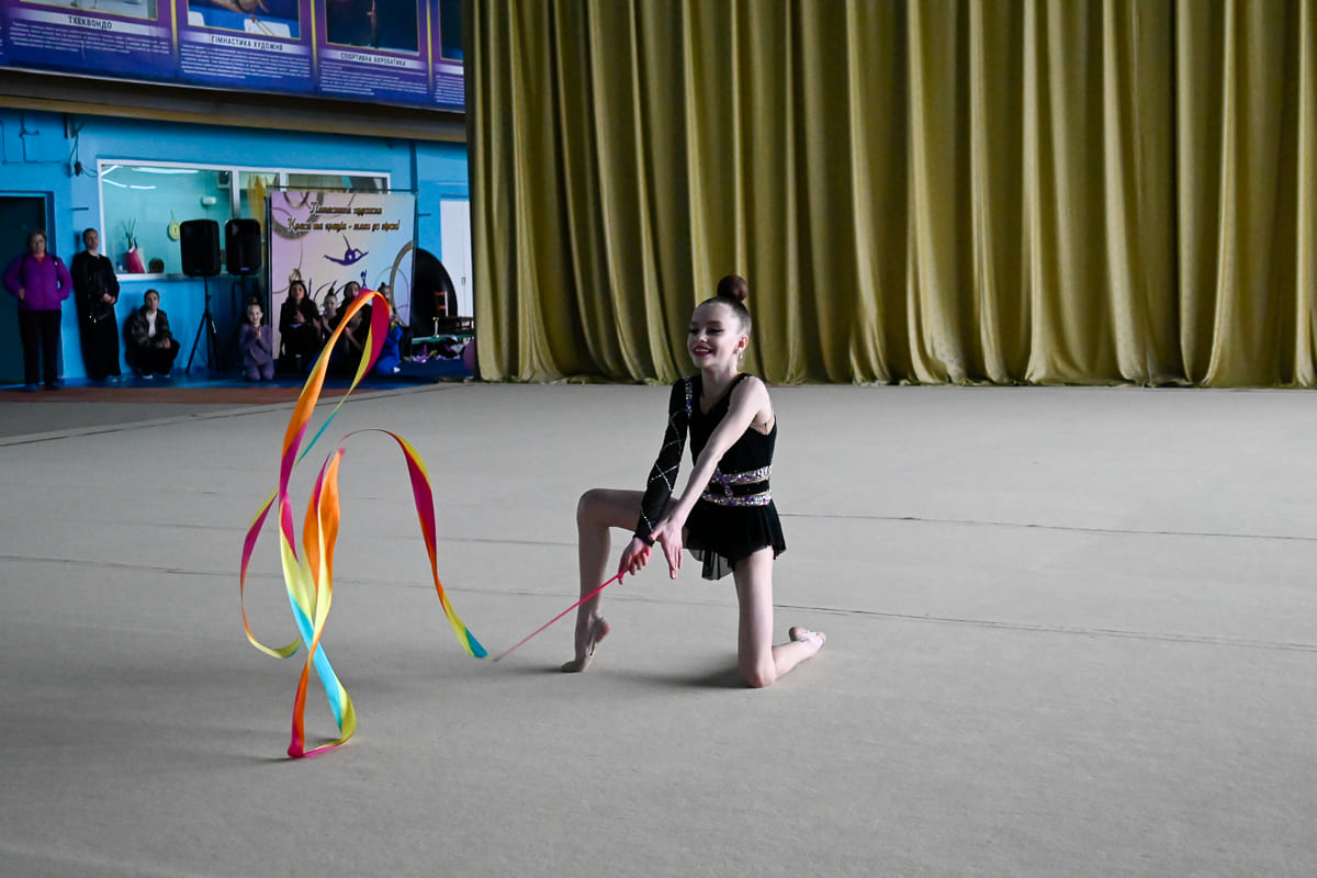 Яна Барвінок розповіла, що свою майстерність демонстрували спортсменки молодших розрядів, які виконували свої програми та представляли усі шість видів вправ. Наймолодші виконували вправи без предмета, а також зі скакалкою, обручем і м’ячем. Старші дівчата працювали зі стрічкою, булавами, м’ячем та обручем.